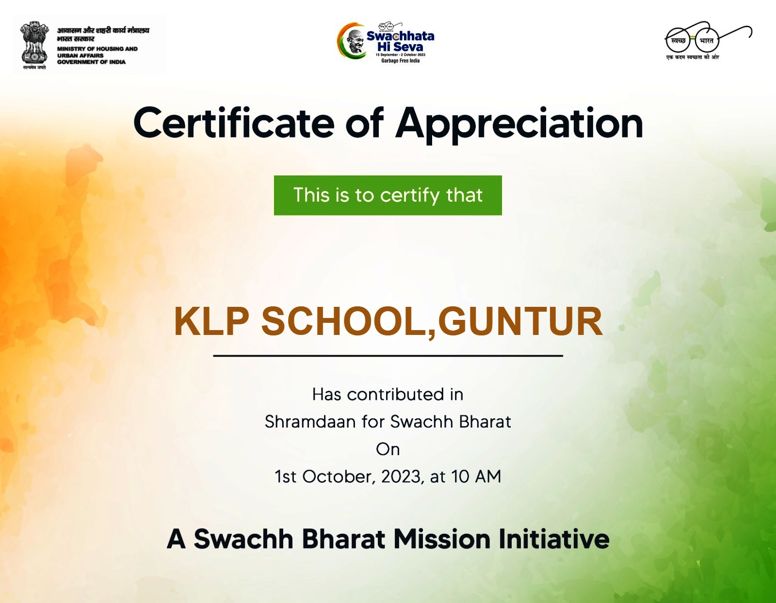 Certificate of Appreciation Swachhata Hi Seva - 01.10.2023 View Details...